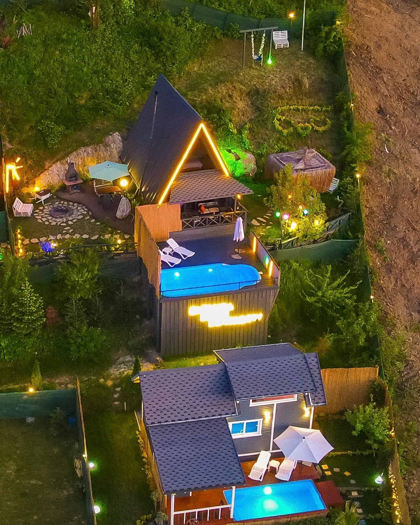 Sapanca Gölü manzaralı, karakteristik A-çatı tasarımıyla büyüleyici bungalovumuz. Panoramik pencerelerden göl ve orman manzarası, özel havuz ve barbekü alanı ile unutulmaz bir doğa deneyimi sunar.
